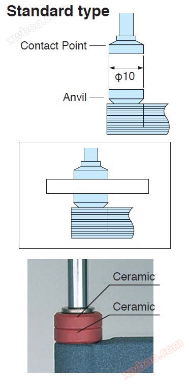 Einige Messgeräte verwenden Keramikkopfe und die Arbeitskontaktfläche ist Keramik, die die Lebensdauer verlängert. Außerdem gibt esFE (Material gehärtet SK4) ist erhältlich.